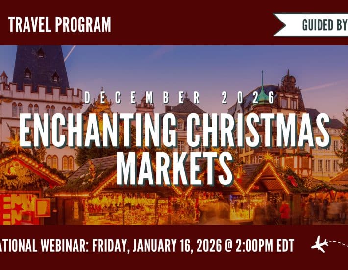 Enchanting Christmas Marketsof Germany, Switzerland and France Learn about this trip at the upcoming LIVE webinar on January 16, 2026 at 2:00 PM. Register…