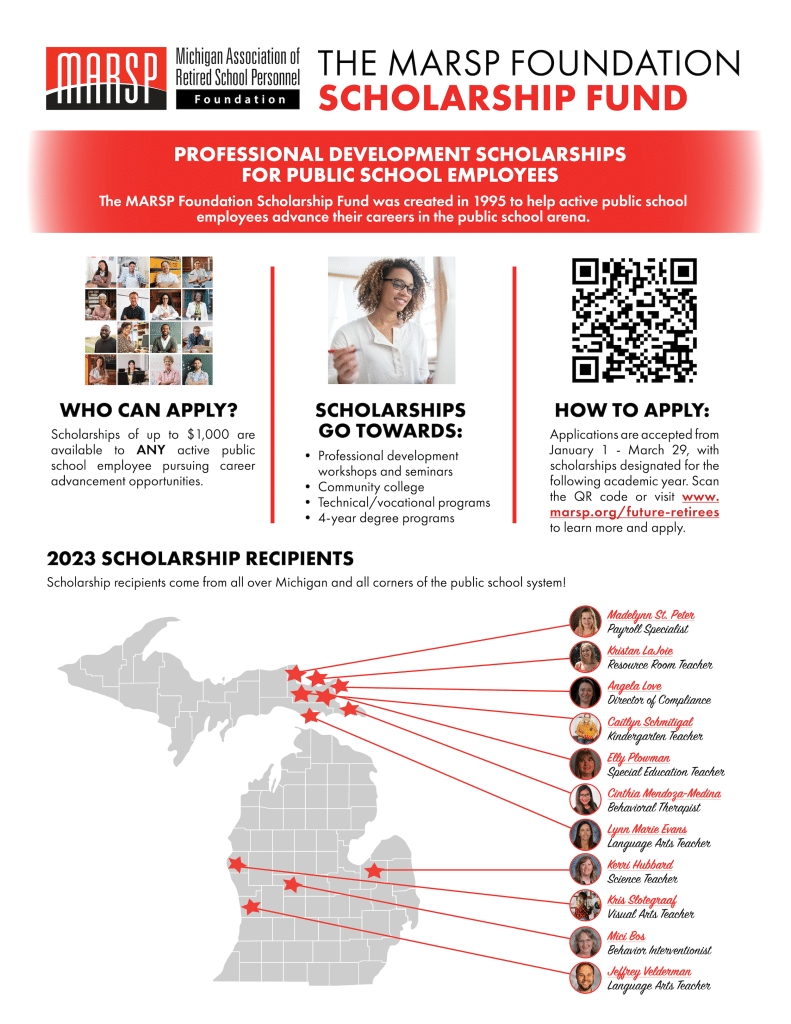 As we approach the 2025 scholarship application season, please share this opportunity with potential applicants and consider contributing to the Scholarship Fund. Together, we will continue enhancing careers and bringing new skills and innovation to Michigan’s classrooms!